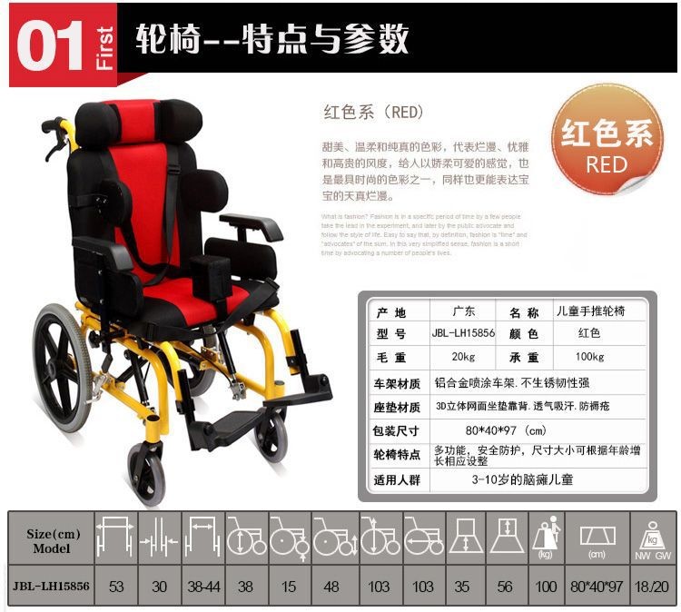 Brain paralysis cerebral palsy wheelchair with comfortable seat for children
