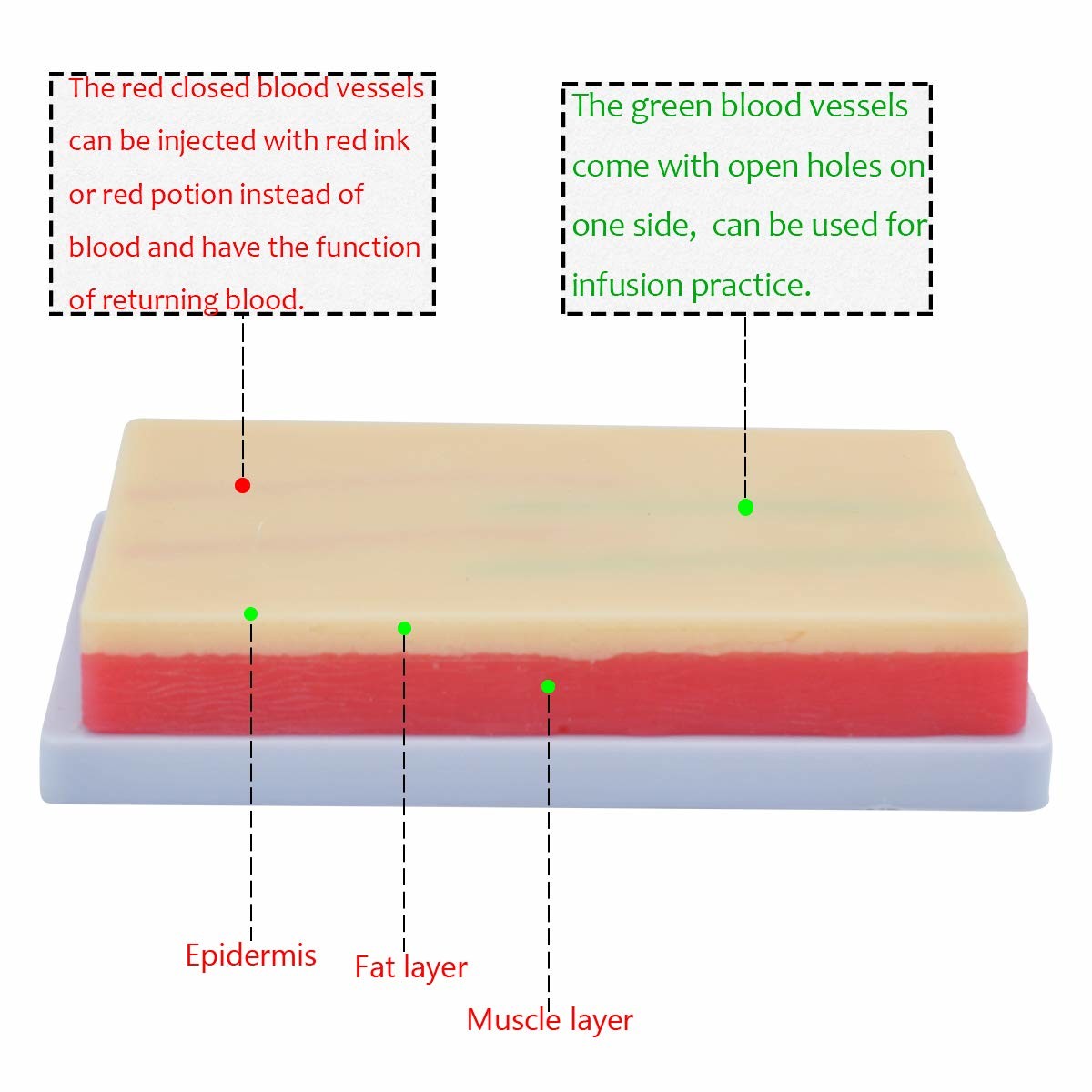 * Applicazione: questo modello di pelle con base antiscivolo può essere utilizzato per la pratica e l' addestramento di iniezione, infusione e sangue.