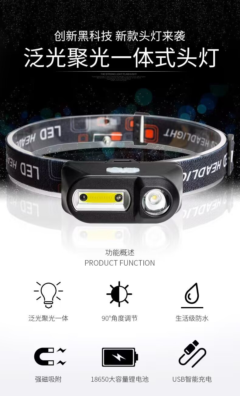 Torcia di emergenza per esterni con batteria, ricarica USB, faro